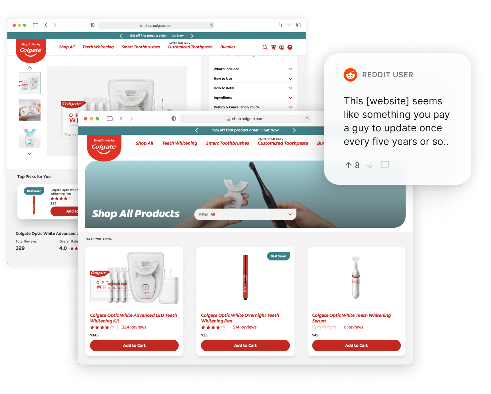 As a global oral care company, Colgate-Palmolive offers its products on its eCommerce shop ShopSmiles—yet the site struggles to maintain its visiting users.
